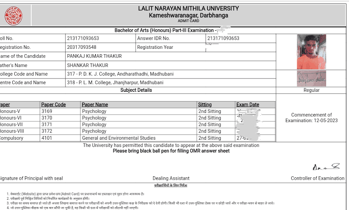 एलएनएमयू पार्ट 3 परीक्षा 2025: एडमिट कार्ड में दी गई जानकारी