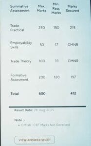 यह स्कोर कार्ड छात्र के पूरे प्रदर्शन को दर्शाता है और आगे ITI Certificate प्राप्त करने के लिए भी जरूरी है।